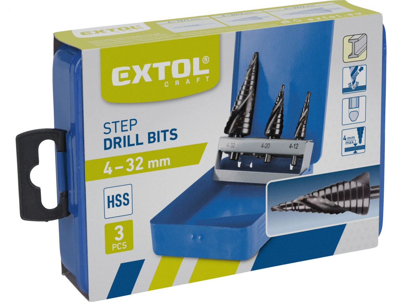 Stupňovité vrtáky se používají pro vrtání kruhových otvorů v slitinových i neslitinových ocelových plátech, trubkách a profilech do tloušťky stěny 4mm, k navrtávání a odhrotování v jedné pracovní operaci. Lze je použít také pro vrtání do měkčích materiálů, např. dřeva, plastů a plexiskla. Kuželový vrták je určen pro plynulé a bezhrotové vrtání a navrtávání otvorů bez deformace plechu. Vrtáky je možné znovu naostřit.