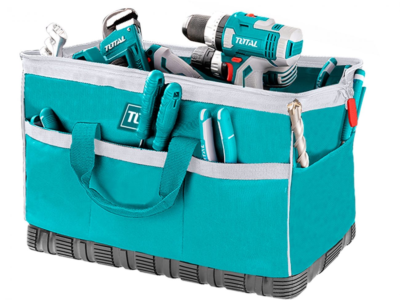Lehká taška na nářadí TOTAL s plastovým dnem. Kvalitní provedení poskytuje dostateční prostor pro uložení nářadí.
