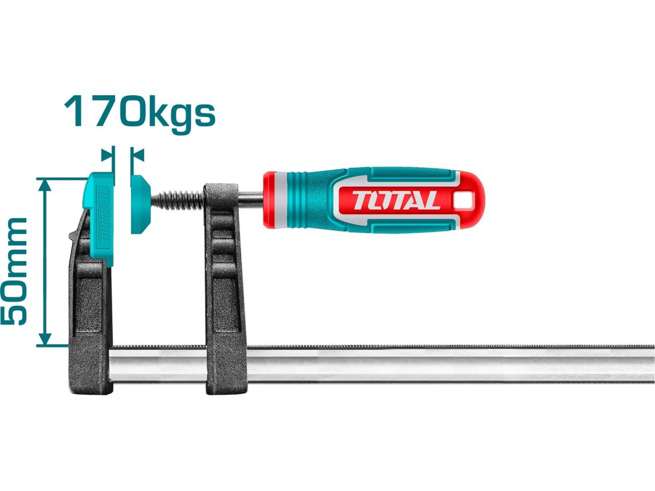 Velikost svorky je 50x150mm. Maximální upínací síla je 170kg. Tloušťka a šířka železného pravítka je 5x15mm a průměr závitu šroubu je 11mm.