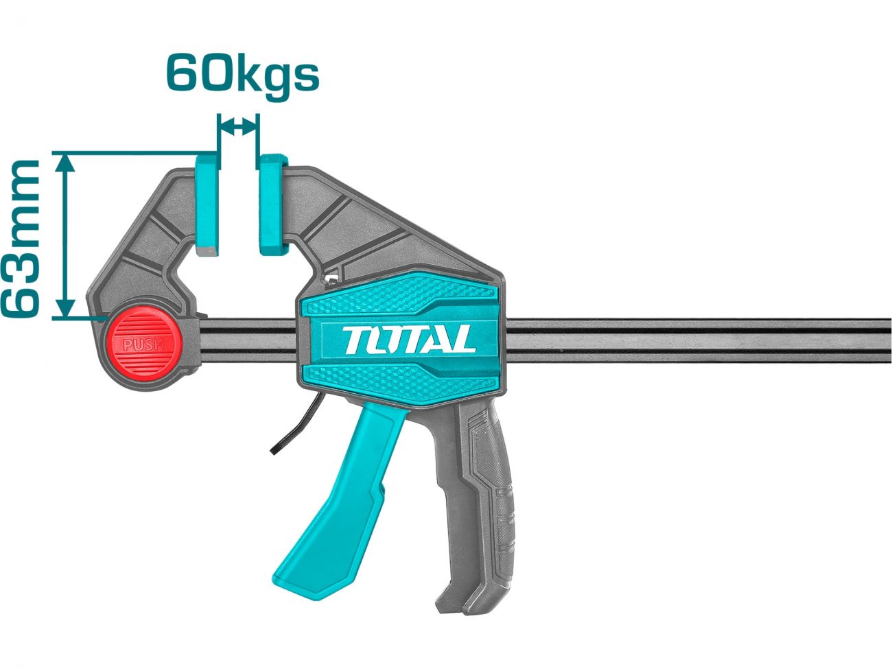 Rozměr spony: 63x300mm Obě čelisti jsou otočné a posuvné a díky tlačítku rychloposuvu umožňují rychlé přenastavení ramen před dotažením Maximální upínací síla: 60 KG Tloušťka a šířka železného pravítka: 6x18mm Industriální kvalita.