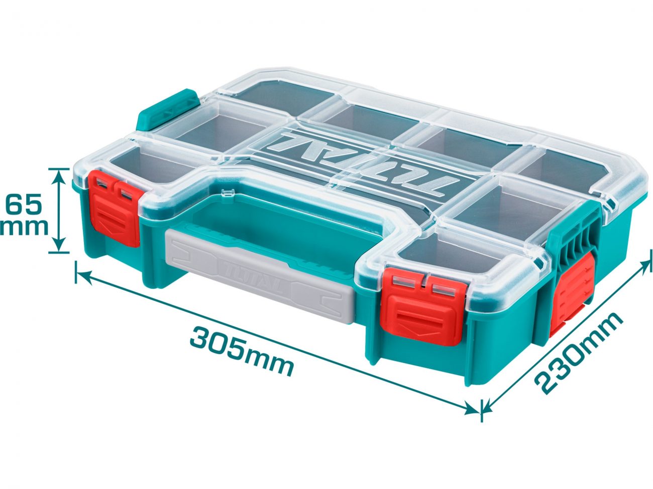 Plastový organizér, Velikost: 305 mmx230 mmx65 mm, Lze skládat dohromadyMateriál: PP, Odnímatelné přepážky, Baleno v kartonové krabici.