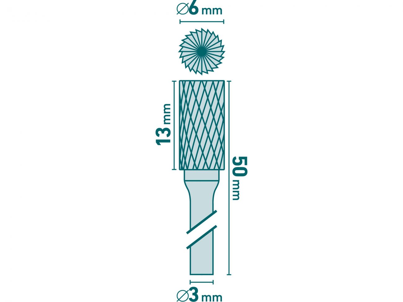 Fréza karbidová, válcová s čelním ozubením, ⌀6x13mm, ⌀stopky 3mm, sek střední (double-cut) Fréza karbidová, válcová s čelním ozubením, ⌀6x13mm, ⌀stopky 3mm, sek střední (double-cut) Fréza karbidová, válcová s čelním ozubením, ⌀6x13mm, ⌀stopky 3mm, sek střední (double-cut) Fréza karbidová, válcová s čelním ozubením, ⌀6x13mm, ⌀stopky 3mm, sek střední (double-cut)