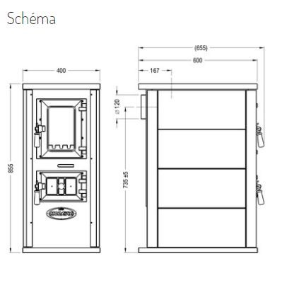 Doporučené palivo: dřevo, dřevěné brikety. Rozměry topeniště: šířka 225, hloubka 320 a výška 350 mm.