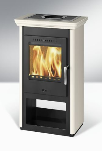 Kamna krbová BORGHOLM černé/smalt.bočnice bílé/ker.římsa bílá