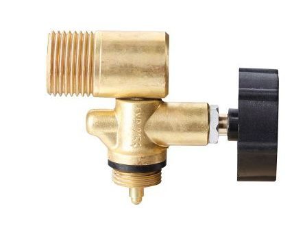 Jednocestný uzavírací ventil k 2kg propanbutanové lahvi s výstupním závitem W21,8L do boku.