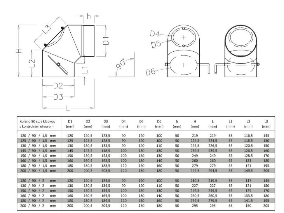 Koleno kouřové silnostěnné (1,5 mm) 160/90 s klapkou a čist. otvorem