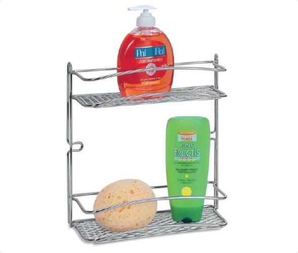 • Drátěná chromovaná polička do koupelny se třemi patry na zavěšení se dvěma přísavkami.