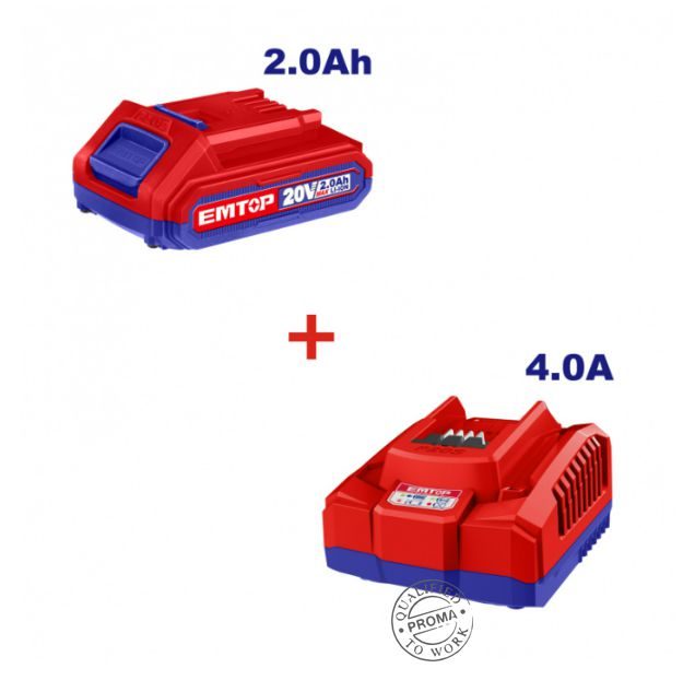 Akumulátor 2,0Ah + nabíječka 4,0A 20V SET EMTOP