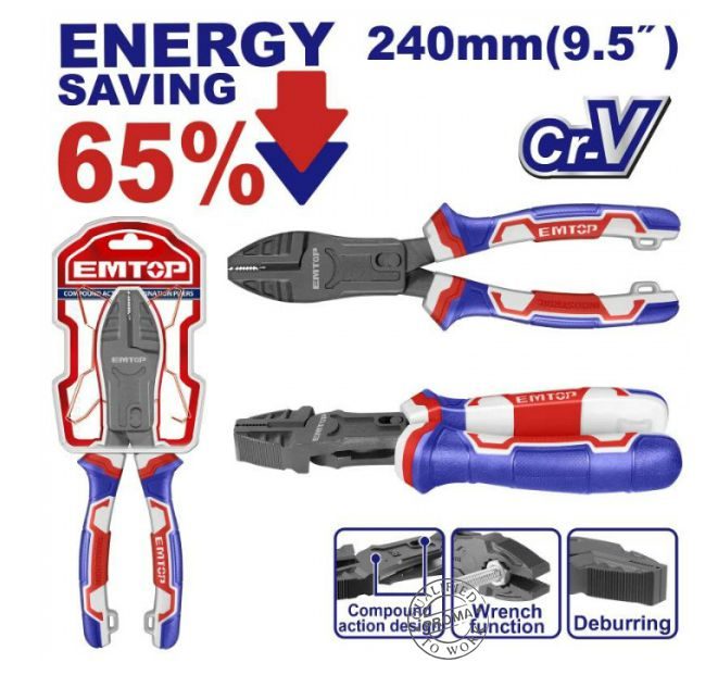 Kleště kombinované převodové 240 mm (úspora síly 65%) EMTOP Kleště kombinované převodové 240 mm (úspora síly 65%) EMTOP Kleště kombinované převodové 240 mm (úspora síly 65%) EMTOP