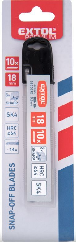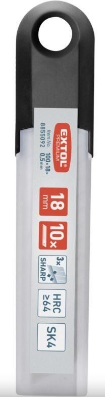 • Břit je složen ze 14 odlamovacích segmentů a je výhodou zejména tam, kde je důležité udržovat přední část břitu a špičku neustále velmi ostrou (např. rozřezávání papírových krabic, plošné řezání papíru, podlahových krytin atd.)