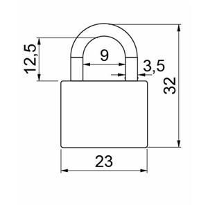 Hliníkový visací zámek s plastovým krytem a tvrzeným třmenem.