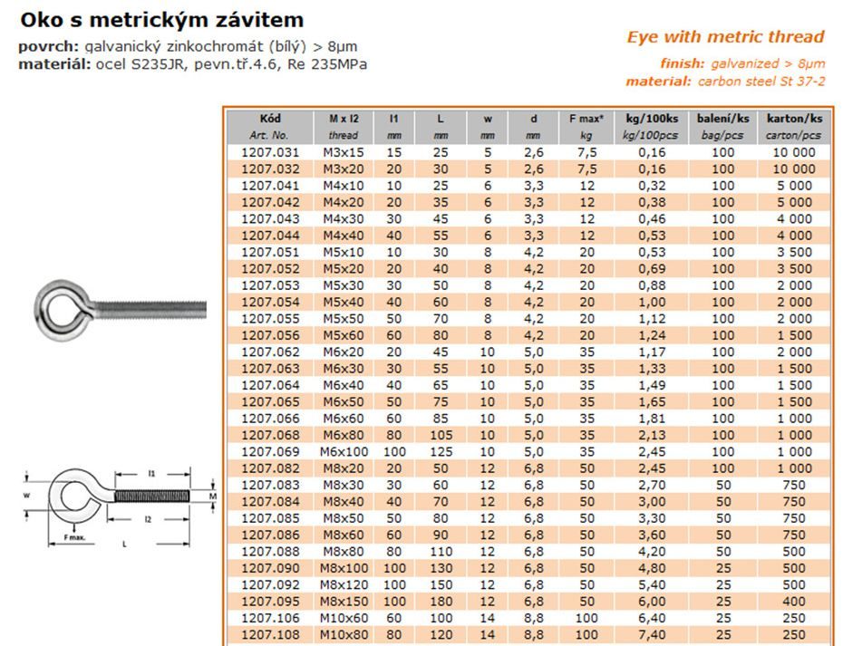 *Rozměr M8 x 80 mm.