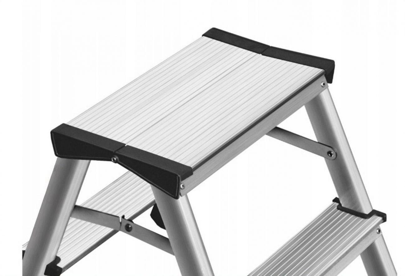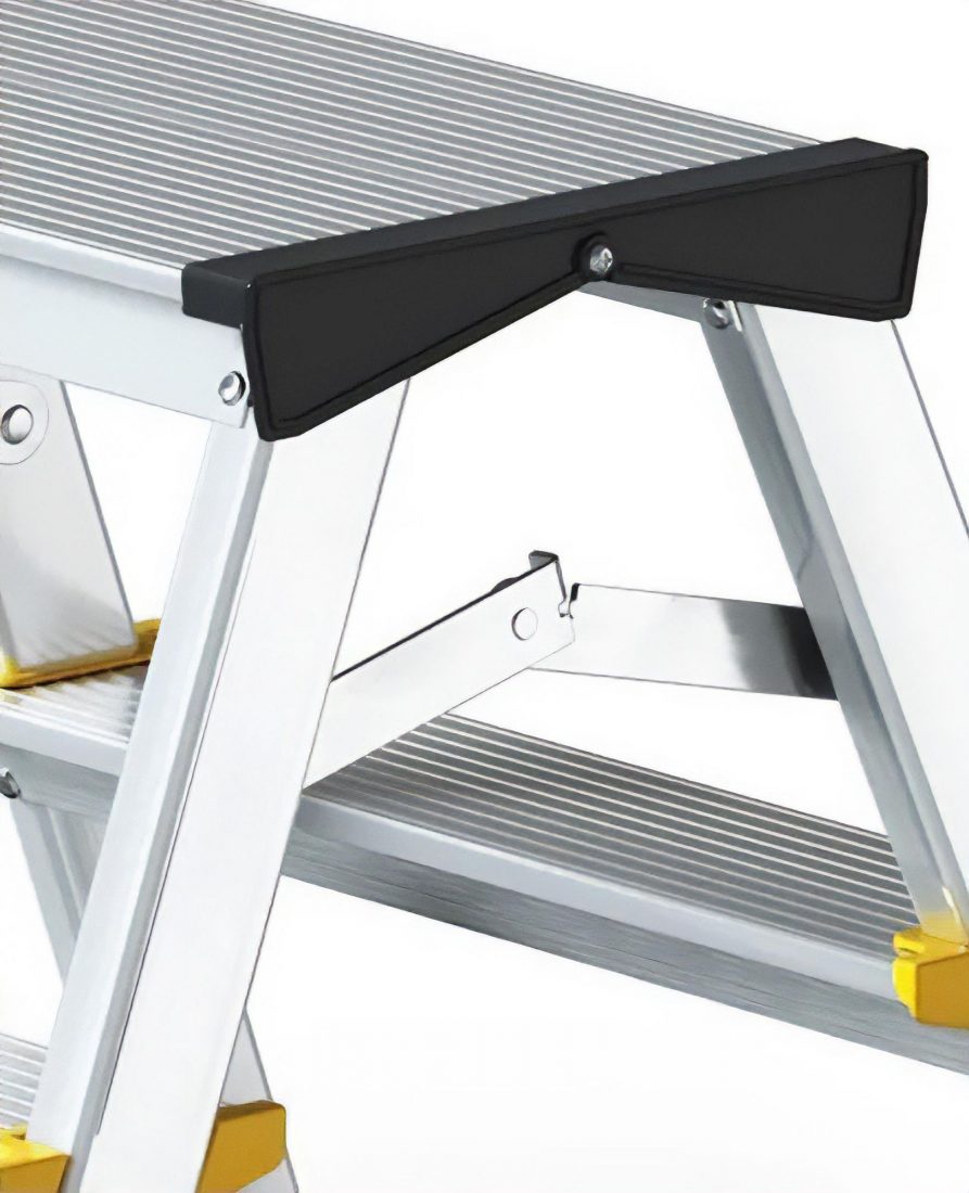 - Široké žebrované schůdky přinýtované k podélníkům a chráněné plastovými kryty