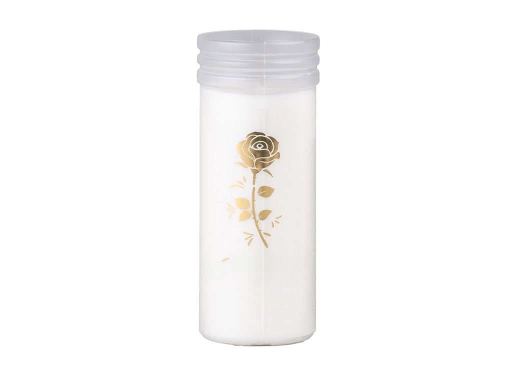 Svíčka hřbitovní vklad 165g, zlatá růže 2,5 dne bílá litá