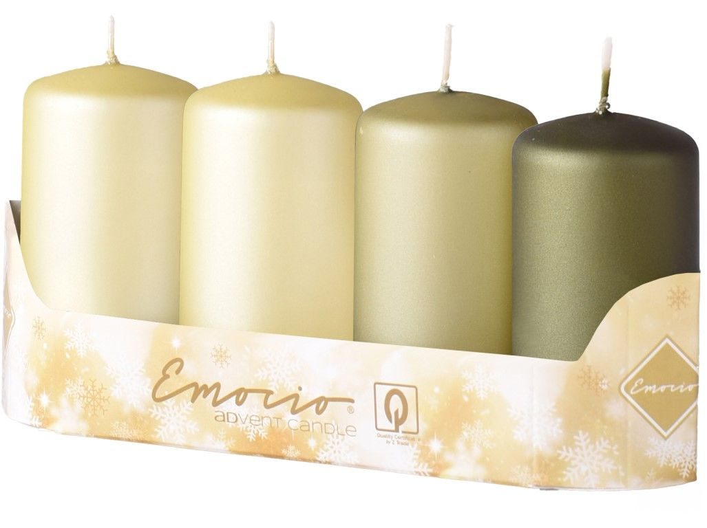 Svíce válec 4 ks 50x90 metal mat zelený tm.+sv. mix