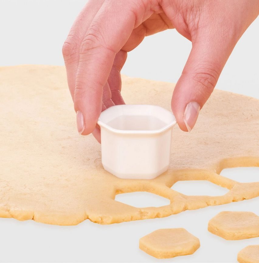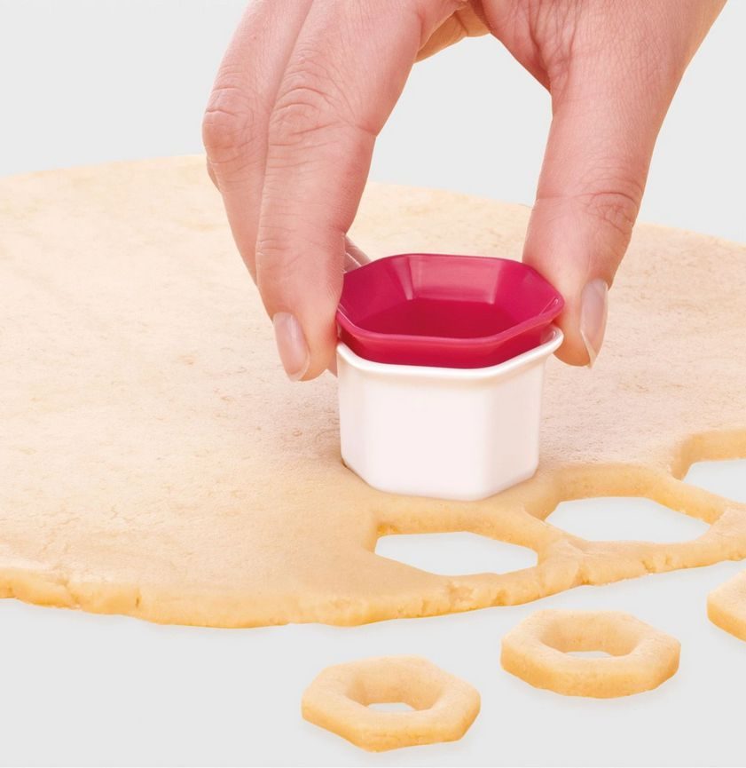 • Použití: Bílým vykrajovátkem vykrajujte spodní část lineckého, horní část vykrajujte oběma vykrajovátky současně.