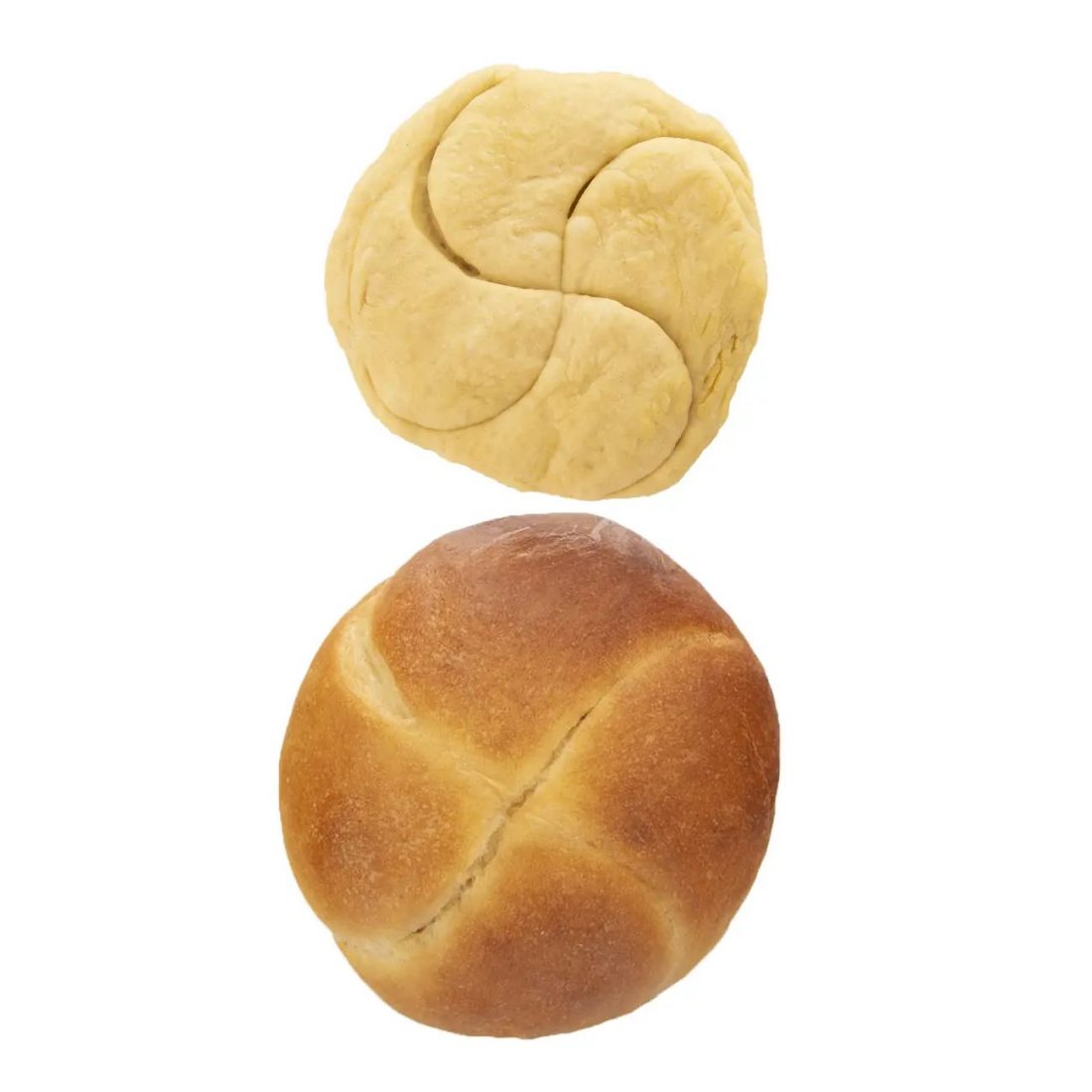 • Z vykynutého těsta uděláte bochánek a na něm vykrojíte raženkou vzor. Poté potřete vajíčkem, posypte solí, kmínem nebo oblíbenými semínky a upečete.