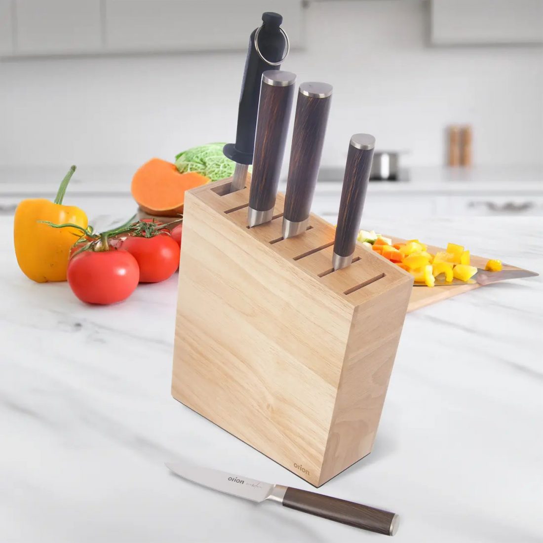 • Nože máte po ruce, netupí se nikde v zásuvkách. Vypadá velmi stylově, uplatní se jak v moderní, tak klasické kuchyni.