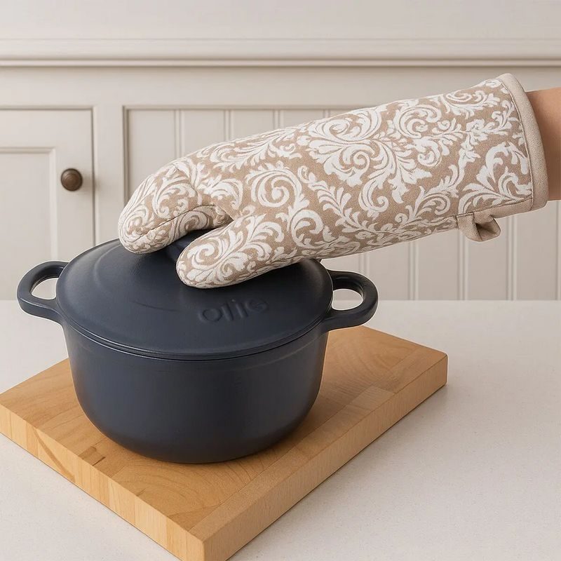 • Kuchyňská chňapka s magnetem ochrání ruce při vaření, pečení a grilování před popálením, usnadní manipulaci s horkým nádobím.