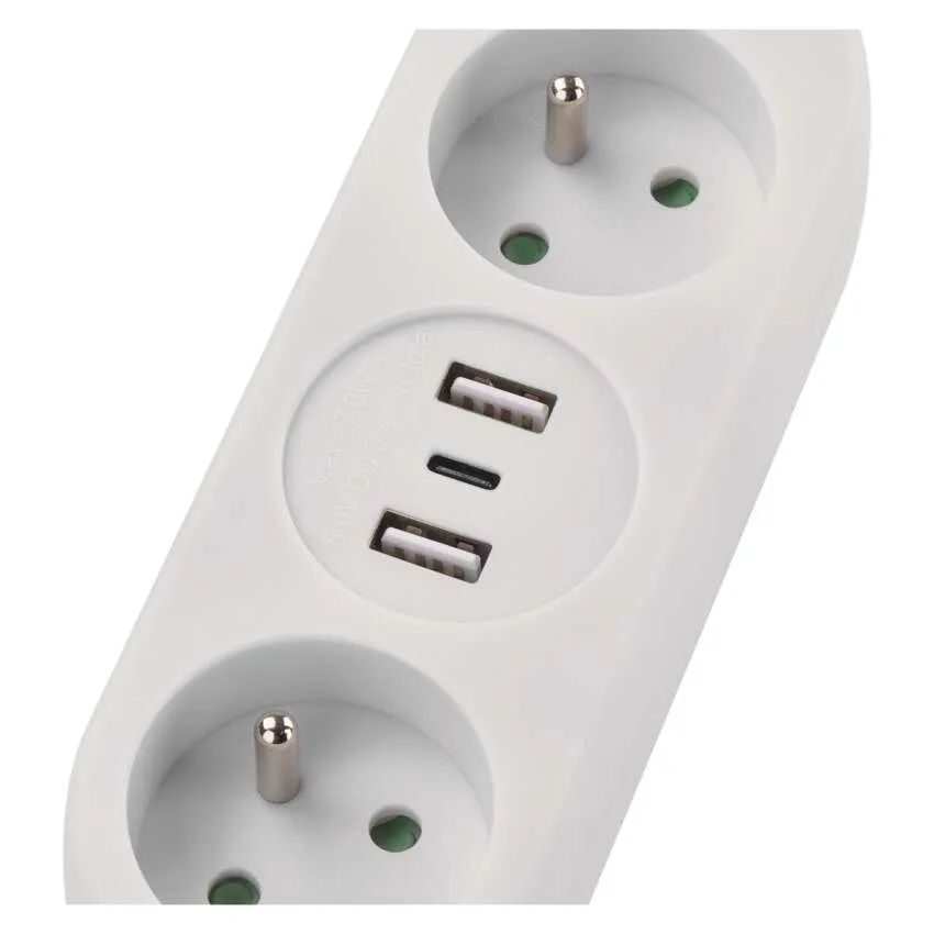Prodlužovačka 2 m / 2 zásuvky+2×USB A+1×USB C / bílý / PVC / 1 mm2